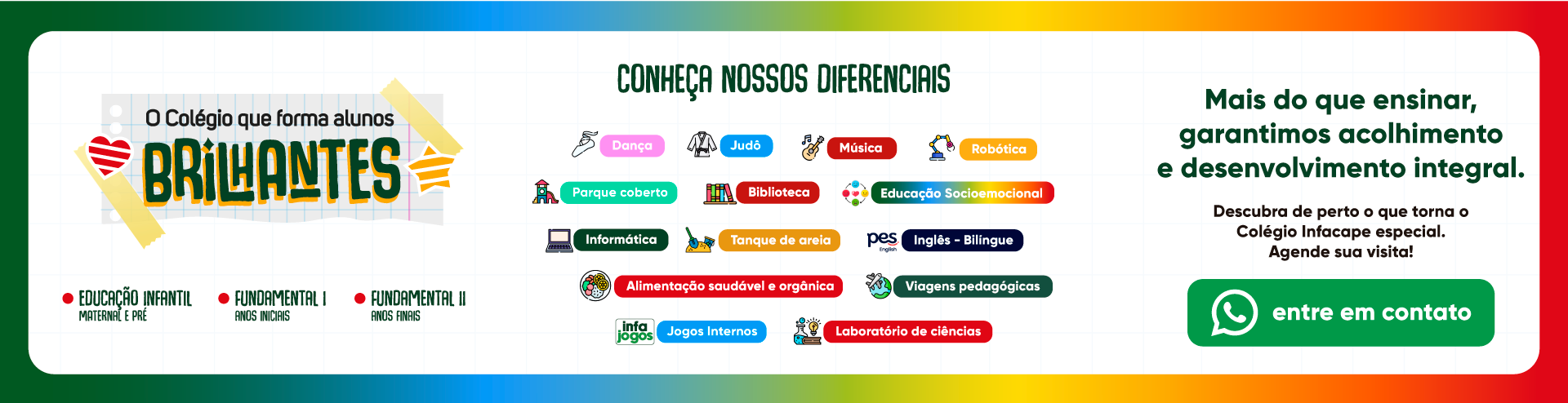 Na Infacape, cuidados como segurança, limpeza, valores e metodologia fazem parte do nosso dia a dia, onde os objetivos vão além das teorias educacionais.